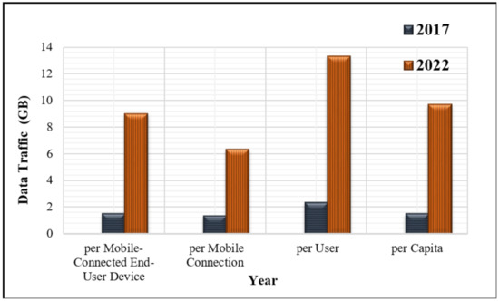 Anticipated Mobile Data Traffic per Month from 2017 to 2022 by Cisco VNI [6].