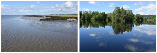 Landscapes dominated by water are preferred, especially when paired with forest and greenways (left: coastal area of North Sea near Nordholz, Lower Saxony, right: lake near Wilhelmsdorf, Baden-Württemberg).