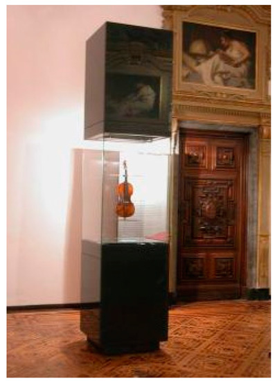 - Goli, G.; Fioravanti, M.; Busoni, S.; Carlson, B.; Mazzanti, P. Measurement and modelling of mass and dimensional variations of historic violins subjected to thermo-hygrometric variations: The case study of the Guarneri “del Gesù” violin (1743) known as the “Cannone”. J. Cult. Herit. 2012, 13, S154–S160. [Google Scholar] [CrossRef]