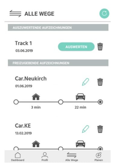 To guarantee a high degree of data quality and to ensure a high level of user acceptance, we wanted to reduce manual corrections of the transportation modes by the users as far as possible. Hence, we invested a lot of effort in improving the quality of the TMD. With our optimized TMD, we could finally reach an accuracy of 97% for vehicle-bound MOT. Other features that helped to improve user acceptance were the simple but efficient transportation criteria rating and the intelligent cross border multi-modal routing with an extended radius to search for transition points for public transport in the vicinity of the starting point. Besides, we managed to completely fulfill the GDPR requirements.