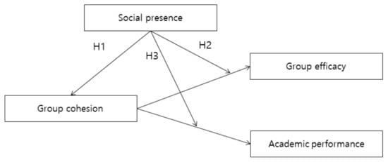 Based on the research outlined above, we derived a set of hypotheses that link group cohesion, social presence, group efficacy, and academic performance (see Figure 1).