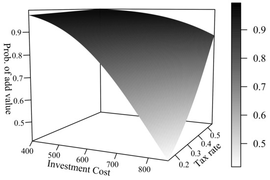 Under usual circumstances, an investor manages its project with the purpose of achieving positive value. In fact, the investor undoubtedly would do his/her best in order to achieve positive taxable income ; and will rationally prefer the government not to increase tax rate and thus not worsen project’s value. However, after inspecting Equation (11), high values of ITA, combined with relatively low prices, can reduce discounted taxable income. Even more, can become negative, i.e., the project incurs in tax losses. In such a case, the investor’s attitude with respect to governmental tax policy suddenly shifts: the investor is better off as long as tax rate increases. This is explained by the fact that for some special conditions that will be discussed below.