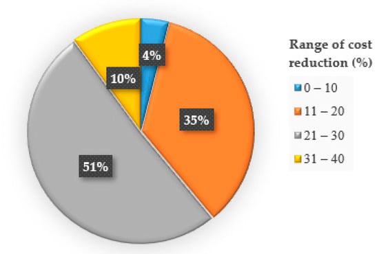 Cost reduction with the workforce activities execution scheduling (WAES) model in the percent of instances.
