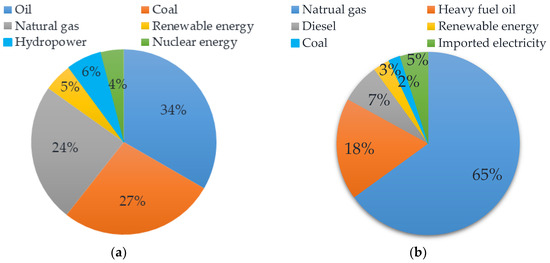 Conventional fossil fuels are the main sources of energy in Bangladesh (Figure 3). Currently, 65% of energy demand is covered by natural gas [11]. However, with the high demand for energy and low reserves of natural gas, it is urgently required to find new sources of energy [12].