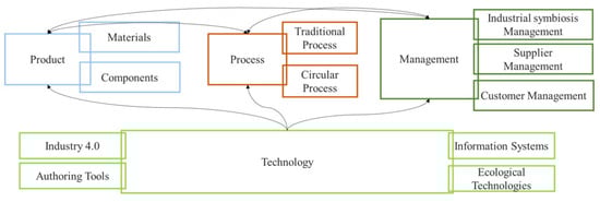 For each sustainable principle, product factors (e.g., product value), processes factors (e.g., energy consumption), managerial factors (e.g., brand reputation), and technologies (e.g., environmental equipment) are taken into account.