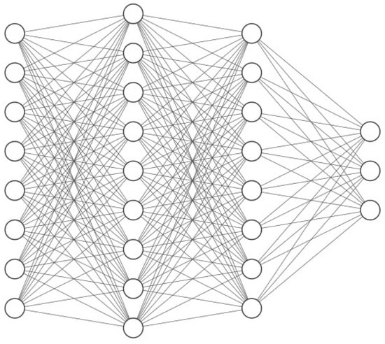 Feed-forward artificial neural network (ANN) with 8-9-8-3 structure.