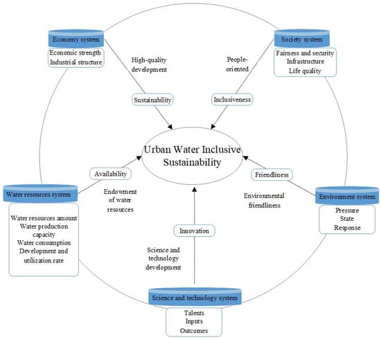 Consequently, inclusive growth emphasizes people-oriented, fair and reasonable sharing of economic growth, while sustainable development focuses on the coordinated development of economy, society and environment. Thus, our study must be based on social inclusiveness, economic sustainability, environmental friendliness and technological innovation, which requires us to consider all the above aspects and incorporate them into the unified framework for research. For this purpose, in this article, we propose a new concept of inclusive sustainability to fully describe the inclusive sustainable development capacity of urban water resources.