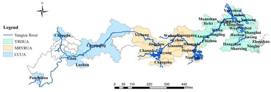 The Yangtze River Economic Belt (YREB) is the river basin economic belt with the largest population and industrial scale in the world. The urban development and 500 million people’s lives in the YREB are closely related to water resources. According to the China Water Resources Bulletin of 2019, the total water resources of the nine provinces and two municipalities in the YREB accounted for 42.95% of the nation. The water consumption of industry, agriculture, residents and ecological environment accounted for 59.4%, 36.85%, 44.7% and 19.57%, respectively, and wastewater discharge accounted for more than 40%. Moreover, heavy energy consumption, water consumption and polluting industries such as coal, chemicals, steel, non-ferrous metals and papermaking are gathered along the Yangtze River, which poses a major threat to the drinking water of urban residents in the YREB. The imbalance of regional development has further aggravated the contradiction between supply and demand of urban water resources and the difficulty of water resources management. The water resources utilization rate in the Yangtze River basin is 17.8%, the reuse rate of industrial water is about 62%, the leakage rate of urban water supply pipe network is generally about 20% and the utilization coefficient of irrigation water is about 0.45 [1]. As a result, the Yangtze River Economic Belt is in a huge challenge for ecological environment and support capacity of urban water resources, and it is urgent to solve the problems of sustainability of water resources and coordinated development between cities in the YREB.