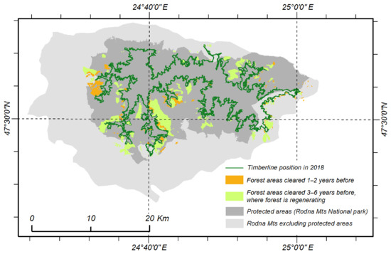 Recent field observations have shown that illegal logging occurs very close to upper timberline on protected areas located in the proximity of human settlements. Illegal forest exploitation by clear cutting is a critical problem in the Rodna Mts National Park, which has generated wide debate over the last years [64].