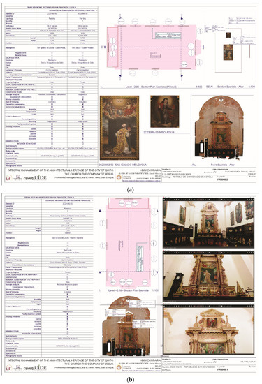 (a) Recording sheet of the altarpiece of San Ignacio de Loyola; (b) recording sheet of the paintings in oils included.