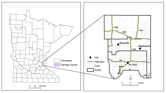 - Minnesota Compass, Ramsey County data. Available online: https://www.mncompass.org/profiles/county/ramsey (accessed on 5 November 2020).