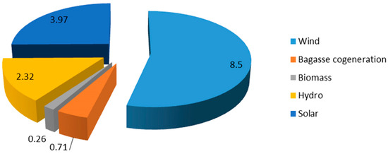 As stated earlier, India has a great potential for wind resources that are distributed diversely; there are some notable states in India, which play a vital role in wind power production, specifically Tamil Nadu. The total renewable installed capacity of the state is estimated to be 15.79 GW as of January 2020 [13]. The mix of the RER shows a greater stack by wind power, about 8.5 GW from the total RER installed capacity, as shown in Figure 4. Moreover, the potential estimation of the state is found to be great about 33.79 GW at 100 m hub height, i.e., 11.25 GW from the wasteland, 22.15 GW from cultivable land, and 0.39 GW from forest areas [14].