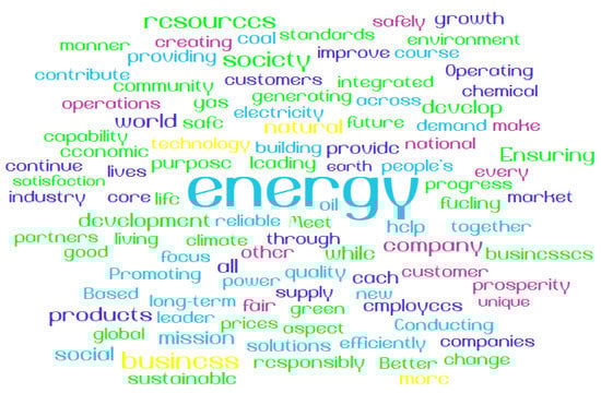 Ruban, D.A.; Yashalova, N.N.; Ermolaev, V.A. Is Environment a Strategic Priority of the Leading Energy Companies? Evidence from Mission Statements. Sustainability 2021, 13, 2192. https://doi.org/10.3390/su13042192