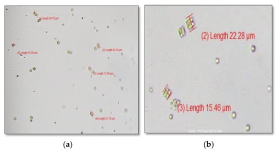 The obtained single colony was isolated and identified based on the morphological features observed under scanning electron microscope (SEM) and optical light microscope. Scenedesmus sp. showed in liquid green colour, unicellular and appeared to form colonies. They were slightly curved, attached side by side, were laterally arranged in linearly or zigzag; and appeared as spiny, ovoid, or fusiform as shown in Figure 2a,b. The correlation of Scenedesmus sp. cells number in a colony has the amount of protoplasm which is required for cell division.
