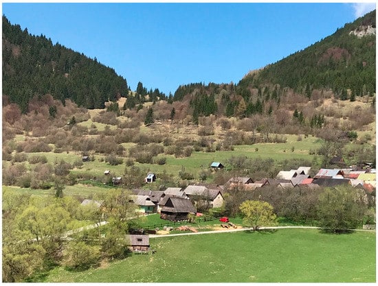 Historical landscape structures represent the set of elements and phenomena in the landscape which arose from the deliberate activity of humans during history until the recent past. Such activity was transformed the nature or created new, still preserved structures [,,,]. The Vlkolínec locality presents a preserved form of the historical mountain archetype of the landscape []. These are specific, time-bound and spatially constantly decreasing landscape structures. They are a relic of anthropic activities that have survived to the present day.