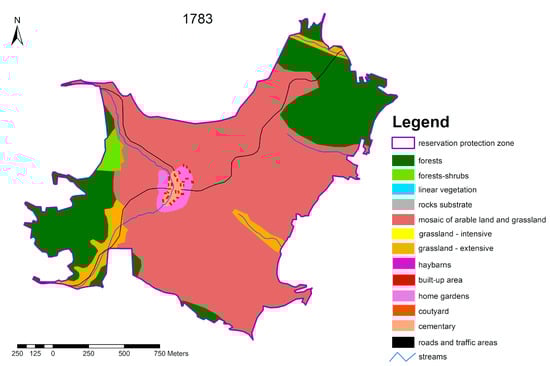 Land-use of the Vlkolínec landscape in the years 1783–2017.