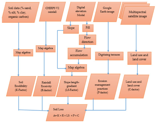 - Gelagay, H.S.; Minale, A.S. Soil loss estimation using GIS and Remote sensing techniques: A case of Koga watershed, Northwestern Ethiopia. Int. Soil Water Conserv. Res. 2016, 4, 126–136. [Google Scholar] [CrossRef]