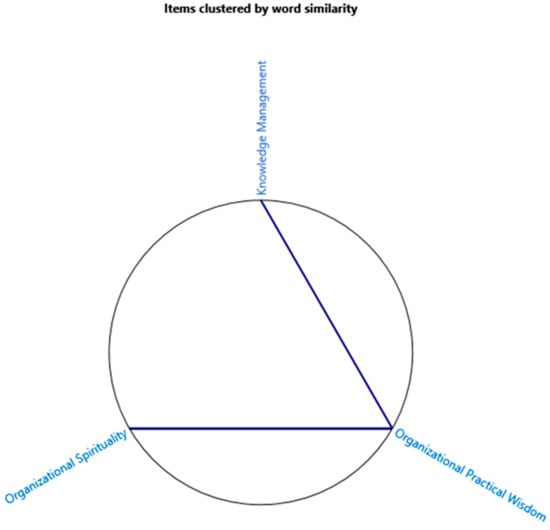 After that analysis, we explored the existence or absence of correlation between organizational practical wisdom, knowledge management, and organizational spirituality constructs through the word similarity. It is the coding clustered by word similarity using the Pearson correlation coefficient (NVivo 12).