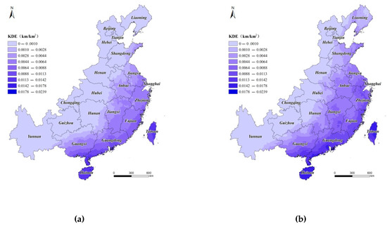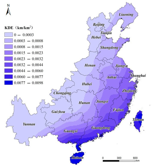Due to the numerous and complex factors affecting the typhoon disaster risk, it is difficult to analyze the risk completely objectively and quantitatively. The typhoon hazard risk model based on the KDE index is only a preliminary exploration. When making typhoon disaster risk zoning, more factors should be considered, such as people’s awareness of disaster prevention and mitigation and disaster mitigation facilities. This will be further studied in the future. A new method should also be developed to analyze regional typhoon hazards. The frequency of typhoon influence should also be considered alongside intensity and duration [50,51,52]. The comprehensive effect of typhoons on each affected area can also be quantified more comprehensively and objectively. These can better reflect the regional differentiation of typhoon hazards and enable more accurate regional typhoon disaster risk assessment.
