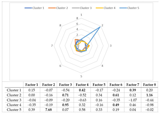 Figure 3. Factors’ averages for SOM Kohonen clustering. Source: Authors’ analysis.