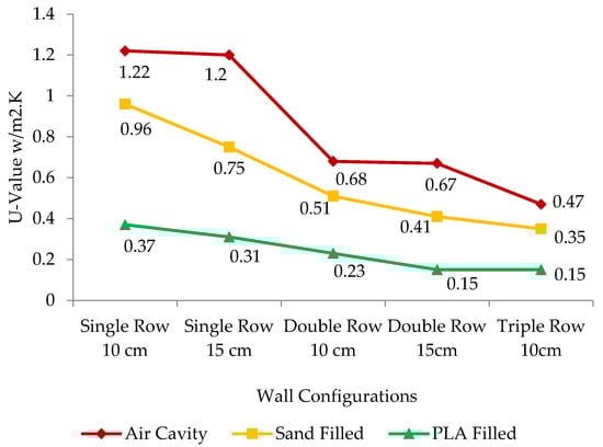 Cavity fillings effect on U-values obtained at ΔT 40 K printed using Mix 3 [34].