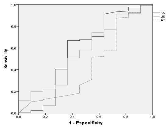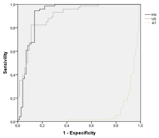 There was an insignificant tendency, in the population aged 21 and 24, for a lesser knowledge of concepts related to digital competence (KN). In the US, no significant differences were found either in the age variable or in the AT variable (AUC = 0.566, p = 0.230, 95% CI = 0.455–0.676). Those of the groups that present the ROC curve (21–24 years) showed a more positive attitude towards technology.