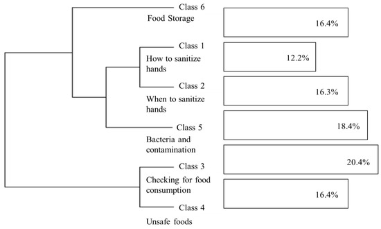Then, the UR safe/unsafe food stood out (40%). Considering that the “three” and “four” classes resulting from the DHC correspond in content to this registration unit, it is noted that they stood out similarly (36.7%). Different perspectives were observed. When asked how to check when the food is fit for consumption, they responded by checking the expiration date on processed foods’ packaging and the food’s appearance and smell. Research with domestic food handlers has shown that some determine that food is safe because of its appearance or smell, both unreliable indicators for food safety [18].