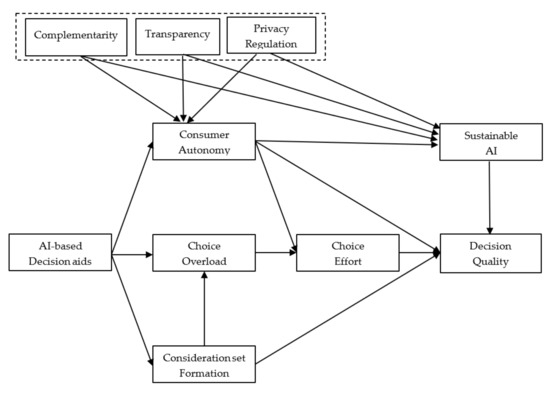 Choice effort is regarded as a driver of decision quality [34,44], and efforts to reduce choice effort should result in increased decision quality. Furthermore, as decision quality is driven by the degree to which consumers’ choices reflect their true preferences, we argue that decision quality is increased by an increase in AI sustainability.