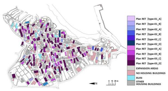 Considering international contexts, there is a wide range of examples of research studies dedicated to the characterization of building types in historic centers, which are fundamental to these territories’ conservation. Regarding Mediterranean countries, the Italian studies conducted on Sardinia island and the technical manuals developed are important references [16]. In other territories, such as the Abruzzo region, there are also examples of detailed documents published [17]. In Spain, significant technical advances have also been made considering different historical territories [18,19].