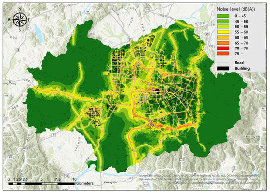 Road-traffic noise map of Gwangju Metropolitan City [39,44,45].