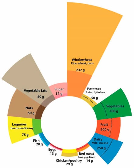 - Willett, W.; Rockström, J.; Loken, B.; Springmann, M.; Lang, T.; Vermeulen, S.; Garnett, T.; Tilman, D.; DeClerck, F.; Wood, A.; et al. Food in the Anthropocene: The EAT–Lancet Commission on healthy diets from sustainable food systems. Lancet 2019, 393, 447–492. [Google Scholar] [CrossRef]