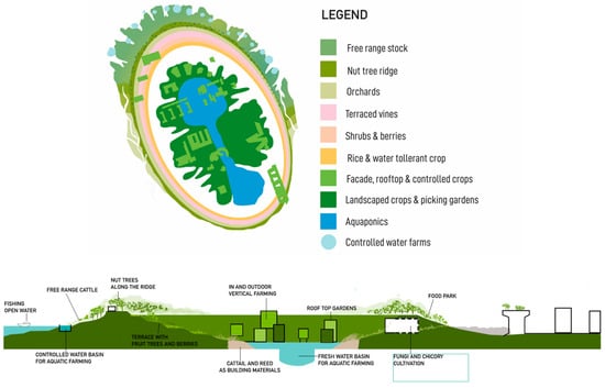 - The program of demand for the growth of food, its spatial implications, and the required amounts and spaces for water are quantitatively analysed [,,].
