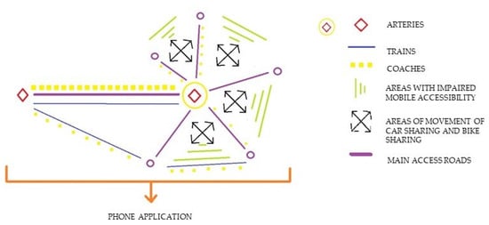 The concept of the innovative model for the solution of mobility problems within peripheral areas is consistent with the concept of sustainable transport development. A diagram of that model is presented in Figure 2.