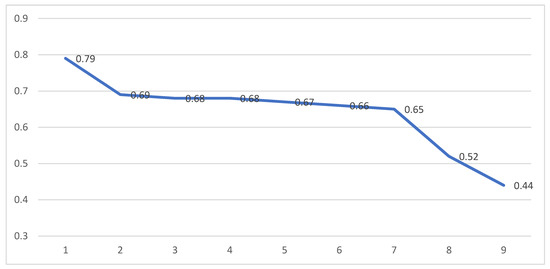 The results were compared to the ideal model; therefore, for the variable xj min, i.e., the minimum value of the level of acceptability, the value of 1 was adopted, and, for the variable xj max, i.e., the maximum value of the level of acceptability, the value of 5 was adopted.