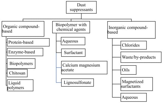 Flow chart of different classes of dust suppressants.