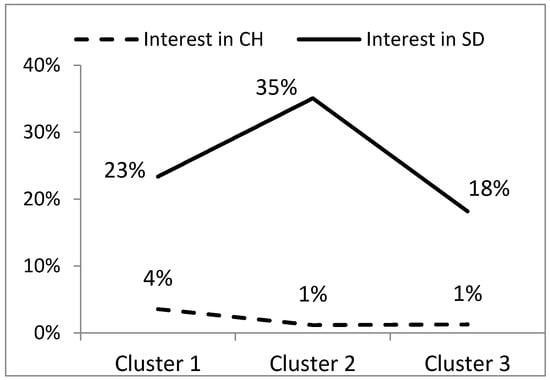 The division of cities into clusters changes when we add interest in sustainable development as a predictor. The second analysis revealed three clusters, with a silhouette measure of cohesion and separation above 0.5 (Figure 1). The first cluster was formed by the three cities in which residents are much more interested in cultural heritage (Mdn = 4%) than residents of other cities. The cities in the first cluster were (again): Barcelona, Naples and Salerno. The second cluster was composed of the cities in which residents are much more interested in sustainable development (Mdn = 34%) in comparison to residents of other cities. The cluster comprised of four cities: Amsterdam, Berlin, Boras, and Goteborg. The rest of the cities grouped into the third cluster in which the interest in cultural heritage and sustainable development did not differ in any statistically significant way from the overall median calculated for the whole sample.