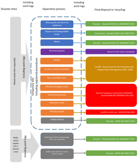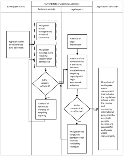 Furthermore, an analysis was developed of current legal and public policy aspects of disaster waste management in Mexico, from a federal and local perspective. Finally, a flowchart proposal was delineated for earthquake waste management.