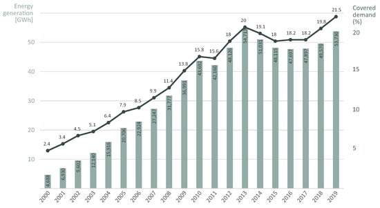- Asociación Empresarial Eólica. Technical Report Eólica 19; Technical Report; AEE: Madrid, Spain, 2020. [Google Scholar]