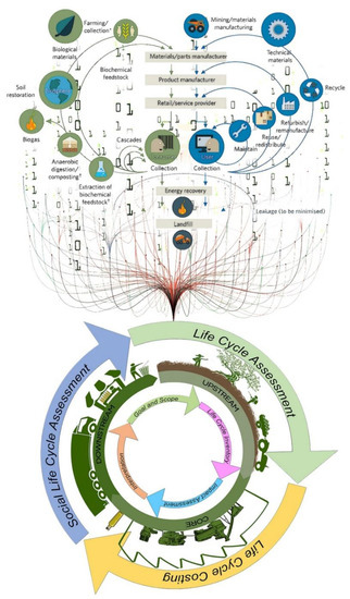 In this direction, as already discussed some studies have already explored the possibility of also using the life cycle costing methodology in the assessment of circularity [40]. While the main circularity indicators are essentially based on the increase in the utility of resources within an economic model, an approach that assesses the life cycle value flows of a product, process, system or organization is a fundamental complement to both circularity and sustainability assessment. What has already been discussed for the LCA also applies to the LCC, so the community of experts in life cycle methodologies and the CE must accompany the approach of these methodologies, resolving the technical and scientific issues [21] that have only briefly been discussed so far.