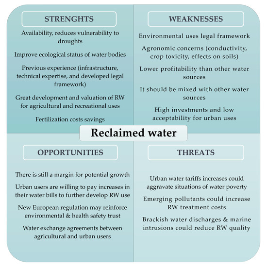 - Gil-Meseguer, E.; Bernabé-Crespo, M.B.; Gómez-Espín, J.M. Recycled Sewage—A water resource for dry regions of Southeastern Spain. Water Resour. Manag. 2019, 33, 725–737. [Google Scholar] [CrossRef]