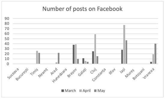 We want to highlight the fact that the Facebook page of DPHA Arad was created on 30 April, and throughout the rest of the 16 lockdown days, it showed an intensive communication effort, with more than one post per day. The Timis DPHA displayed a similar pattern, with a Facebook page created 16 days earlier than Arad, on 14 April. As mentioned before, DPHA Bucharest also made the decision to create a Facebook page, but it was operationalized on 16 May (a day after the end of the state of emergency). Therefore, its activity was not relevant for the current research.