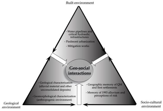 The reminder of the paper is organized as follows. We first describe our analytical framework and methodological approach to the QM case. Second, we apply the Geo-Social Model through a transdisciplinary approach. Third, we identify the interactions between geological, planning, and social processes and visualize them via a geo-social map. Finally, we discuss our results with the broader literature. While we apply the model to the QM case, we suggest that the Geo-Social Model—by identifying and analyzing the connections of the above-mentioned processes—offers a robust tool to (a) understand the complex phenomenology of the landslides than impact in urban zones, (b) integrate the community in disaster risk reduction initiatives, and (c) connect scientific research to policy making in diverse contexts.
