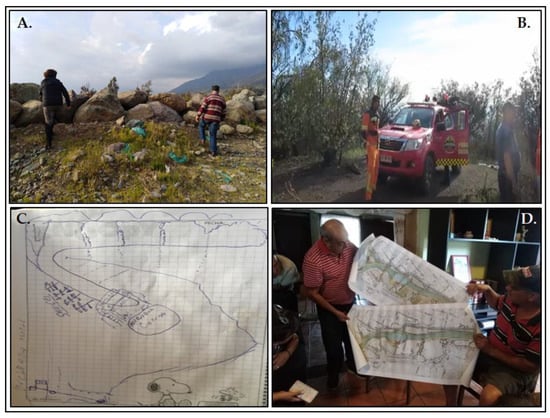 For the socio-cultural environment we followed the same method via in-depth interviews, ethnographic observations, and participatory methods. Data collection was extensive [] using participatory observation techniques, interviews, and photographical register. The participatory methodology consisted of the research team’s engagement in activities carried out by local organizations and field visits made between July 2019 and March 2020; both were accompanied by photographic records and observation notes []. In-depth interviews were conducted through a selective sampling of key actors who survived the alluvium (N = 10), applying a standard semi-structured interview and contextual (non-cross-sectional) data analyses at three levels: Literal, interpretative, and reflective [] following a general inductive approach that considered the emergence of conceptual categories and themes from the data.