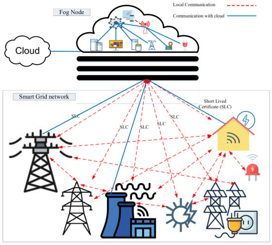 SG infrastructure provides energy efficient services in continuously, reliable and secure fashion. Security is one of most critical element for efficient delivery of services. Security services in real-time can be efficiently achieved using fog computing rather than cloud computing [8,9]. Fog computing is also known as edge computing. Fog computing has three-layer architecture, i.e., client, fog nodes, central server [10,11]. The objective of fog computing is to bring services closer to the edge device. The difference between cloud and fog computing can be represented as (Processing power of Cloud > Processing power of Fog node > Processing power of edge device) and the placement of fog node at the edge of the local network [12,13]. In fog computing, edge nodes can access local data without involving the cloud. Only filtered data will travel to the cloud and this will result in efficient utilization of network bandwidth as well as storage capacity and processing resources of the cloud [14]. Fog nodes capacity may vary from limited resources to high power computational device(s). Generally, the fog layer objective is to provide temporary storage, computation, and other services like communication, control, storage, configuration, measurement, and management. SG is moving from central to the decentralized type of infrastructure [15]. Services are very much advantageous in SG environment like real time processing and response and dynamically allocation of resources on requirement of SG devices, which is also called resource pooling. Fog computing has four main advantages which can be useful for the resolution of the certificate verification problem in IoT networks [16]. (1) Cognition: It means Fog architecture is aware of the edge user requirement. Fog decides about computing, storage, and control functions placement. (2) Efficiency: The best utilization of available resources by pooling resources. (3) Agility: Fog is much more scalable in the deployment and operation of new services; this supports rapid innovation. (4) Latency: Latency issues are resolved for real-time applications.