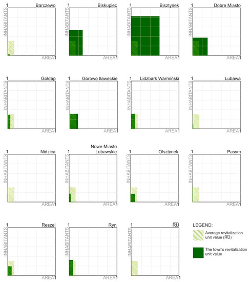 Comparison of the revitalization units of analyzed towns in relation to revitalization unit ().