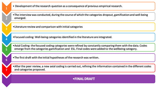 This research has been conducted using Charmaz’s Constructivist Grounded Theory (GT) [84,85,86,87,88] as a guide for both data collection and analysis with the main objective of creating mid-range hypotheses and theories about the interrelation between ESL, gamification, and well-being.