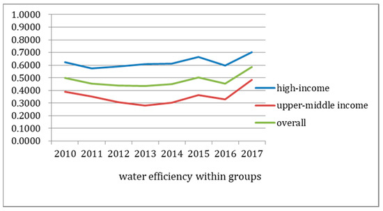 Average water efficiency of each group from 2010 to 2017. (Data source: Authors’ collection).