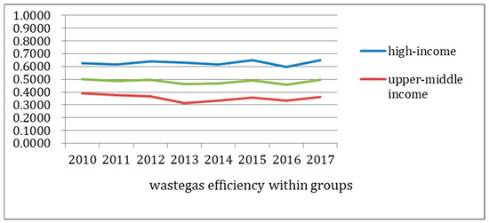 Average waste gas efficiency of each group from 2010 to 2017. (Data source: Authors’ collection).