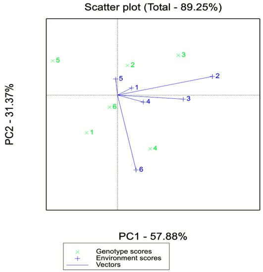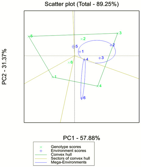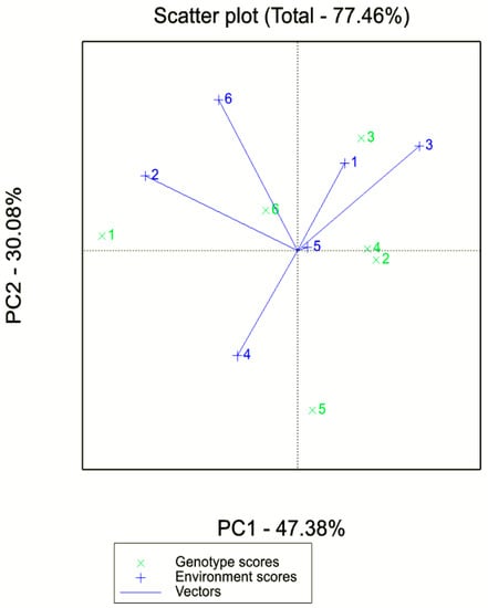 - Yan, W. GGEbiplot—A Windows application for graphical analysis of multi-environment trial data and other types of two-way data. Agron. J. 2001, 93, 1111–1118. [Google Scholar] [CrossRef]