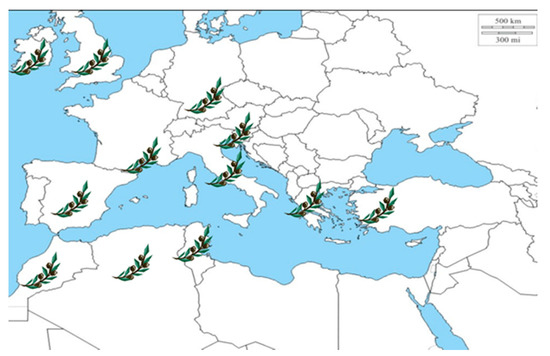 In the European countries, the total area covered with olive trees accounts for 4.59 million ha, 55% of this area being in Spain, 23% in Italy, and 15% in Greece (https://appsso.eurostat.ec.europa.eu/nui/show.do?dataset=orch_olives3&lang=en, accessed on 6 January 2021). In 2018, the total production of olives for olive oil in the European Union was 12.9 million tons. Spain accounted for 71.9% of the European Union total harvested production of olives for olive oil (9.3 million tons of olive oil produced in Spain), followed by Italy with 14.7% and Greece with 7.3% [26].